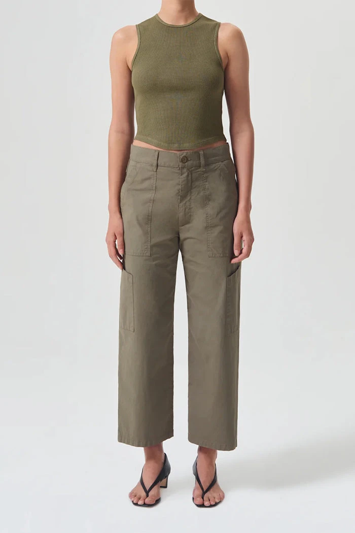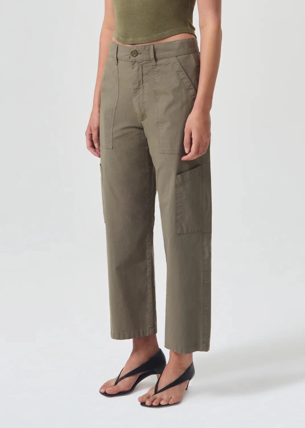 Agolde Daria utility pant in duffle army green. Ultra-lightweight and easy to style, the Daria cargo is super versatile with subtle utility detailing.