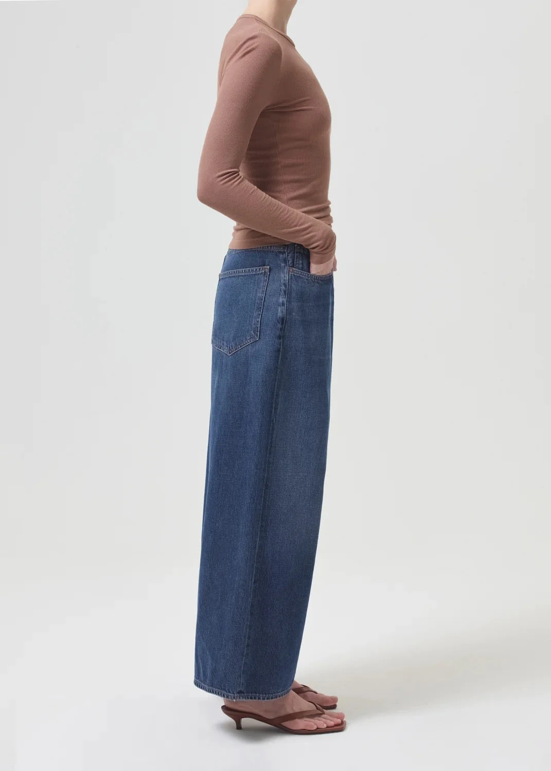 Agolde Shona long sleeve tee in moth warm mauve taupe brown. The Shona is crafted in a super soft, slightly sheer lightweight rib. With a refined crew neckline, a fitted silhouette, that’s not too tight, makes for an ideal layering wardrobe essential.