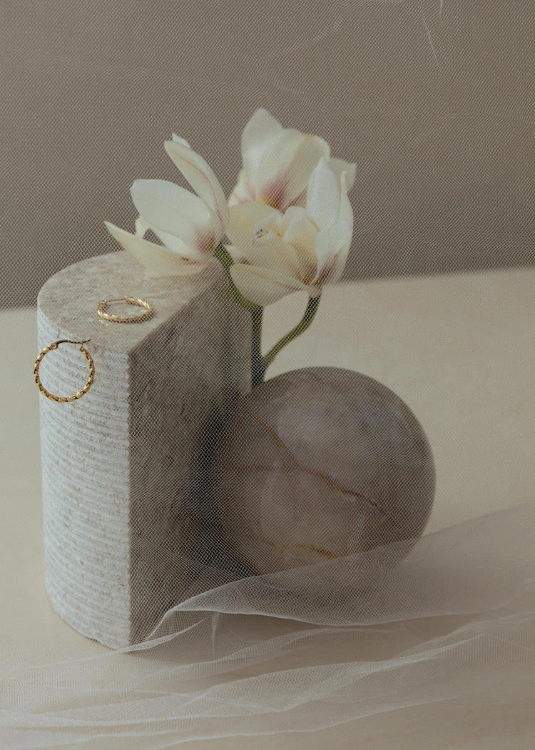 Amber twisted gold hoop earrings.