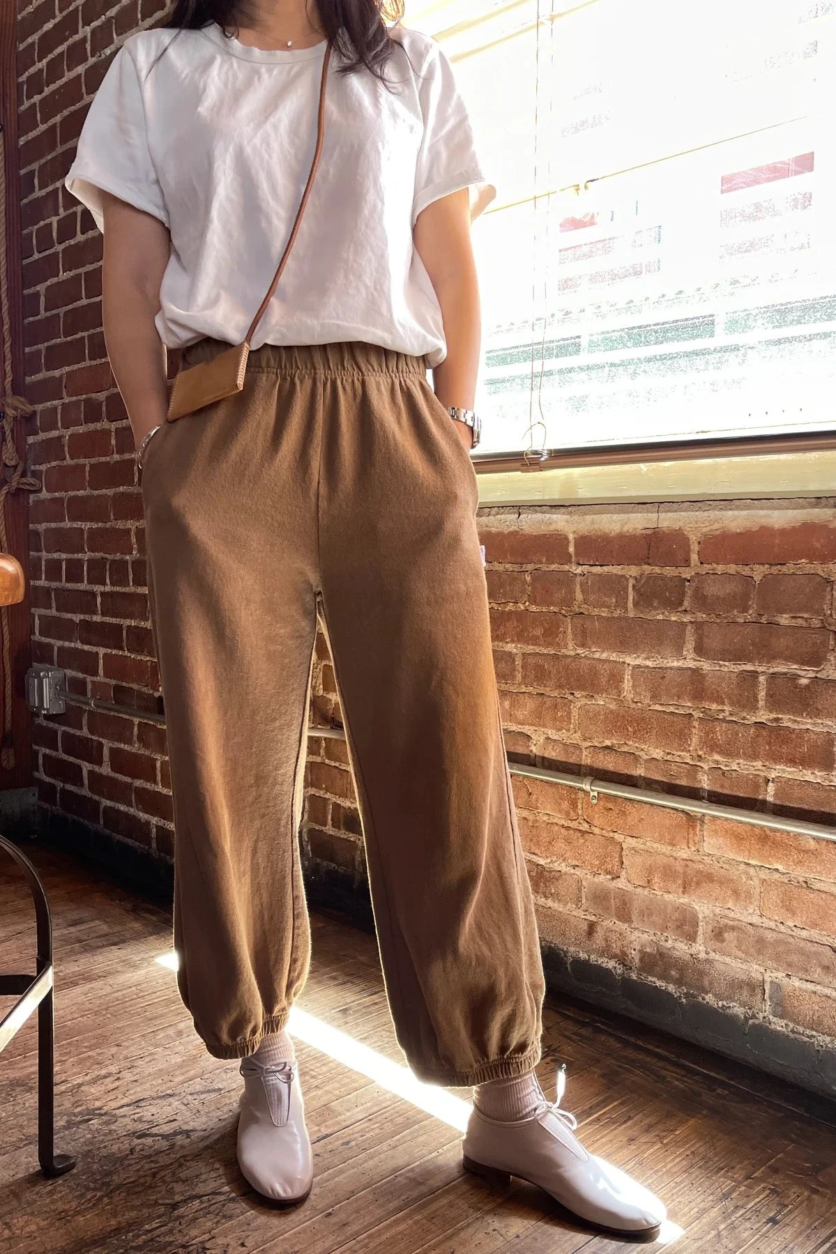 Le Bon Shoppe balloon pants in tobacco. With an elastic leg opening that pairs with any shoe, comfortable elastic high waist and side slit pockets. Gorgeous heavyweight cotton, garment dyed and pre-washed for a rich textured look that is not see-through and does not shrink in the wash!