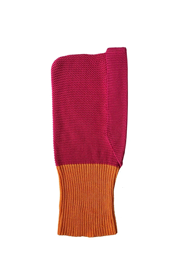 The Series NY Bambu balaclava hood in poppy pink and orange.Â