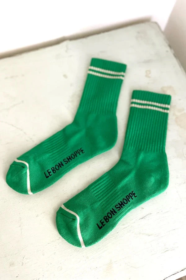 Le Bon Shoppe Boyfriend socks in kelly green. Stay fly all year long in these calf length sports socks. Pair with sneakers or sliders. Perfect for work from home.