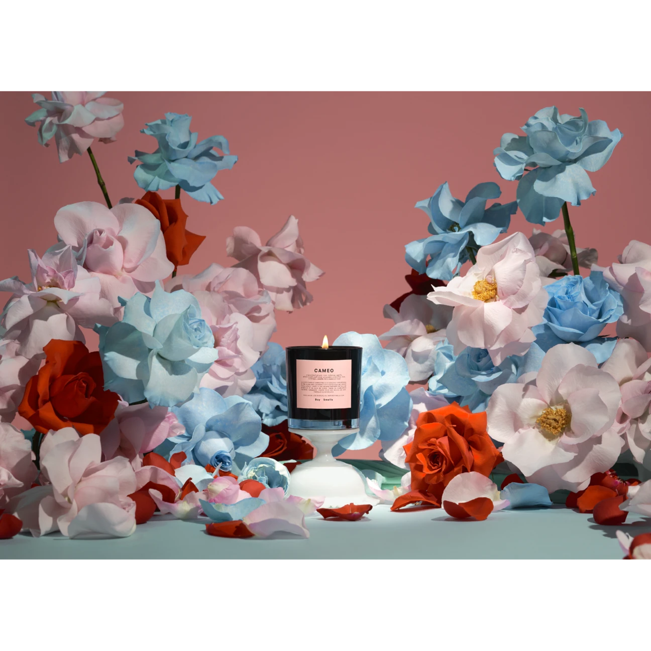 Boy Smells Cameo candle. Crystalized ginger, rose, tuberose, vanilla, white woods and musk. Cameo evokes the strength and softness required to be kind in a not-always-kind world. As the light flickers, the spice of crystallized ginger, warmth of vanilla, and grounding power of rose inspire us to dream of a place where empathy is the default. Inspired by Andy Warhol’s polaroid of Dolly Parton, CAMEO is absurdly pretty, to a subversive degree. It is named after the Wedgewood porcelain pendants, depicting portraits in profile set against the typical color pink.
