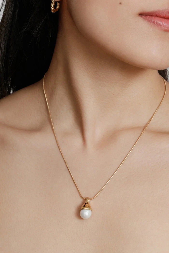 Wolf Circus Candice necklace with snake chain and freshwater baroque pearl.