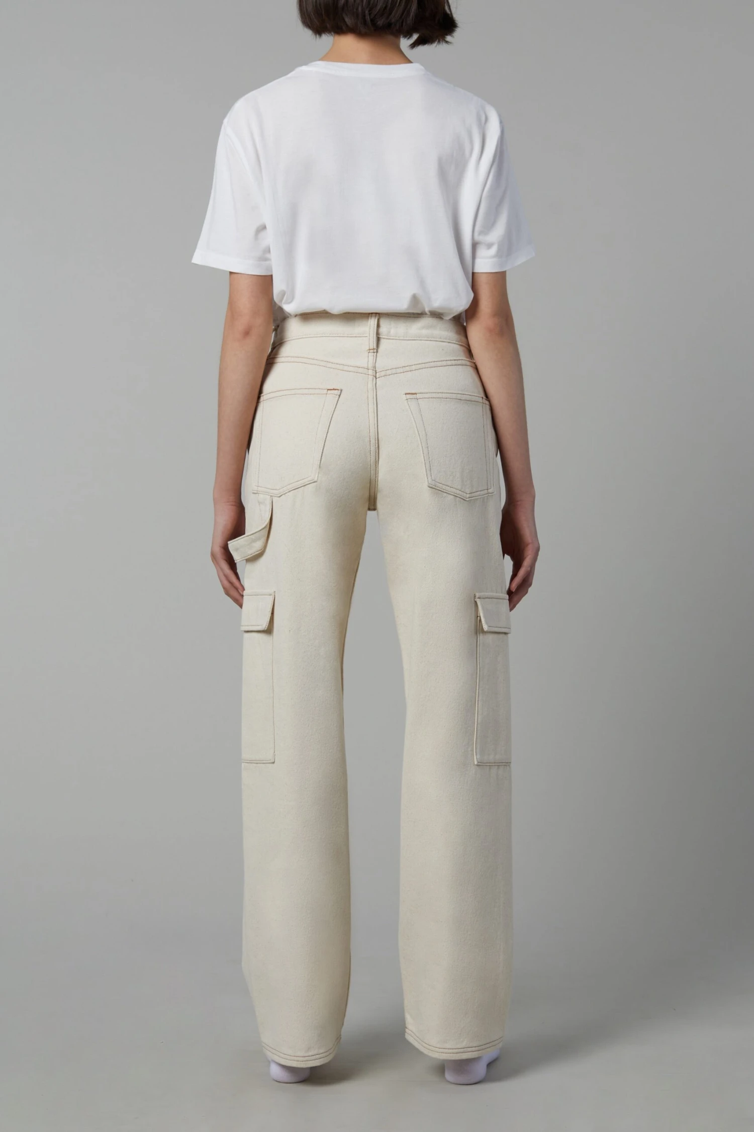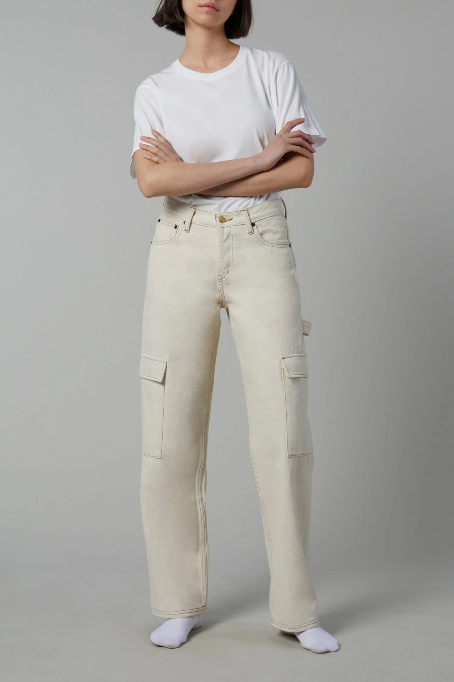 Still Here Charlie cargo pocket jeans in bone with side strap detail.Â