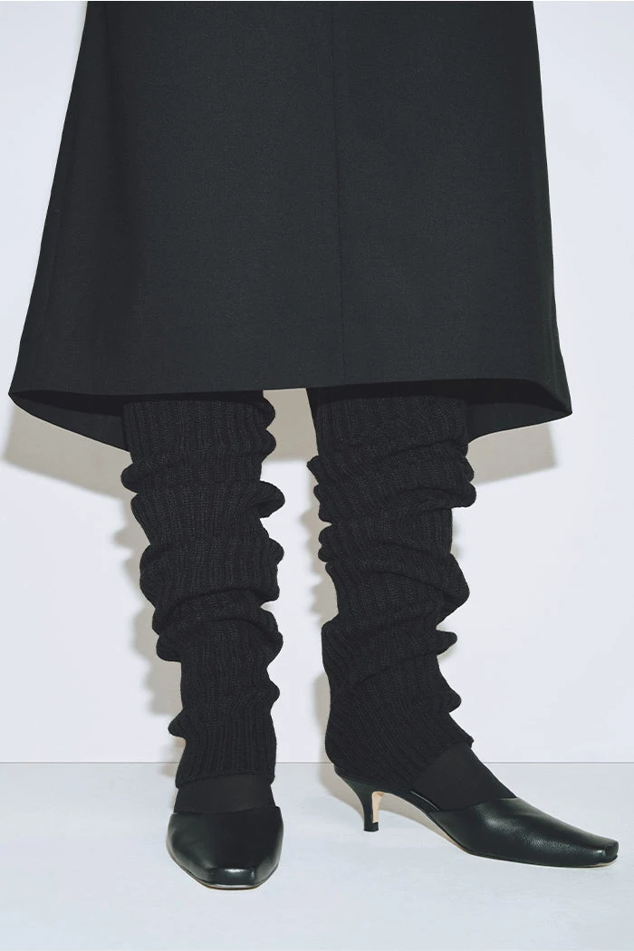 Mijeong Park chunky knit leg warmer in ribbed black.