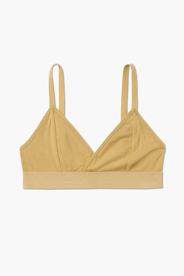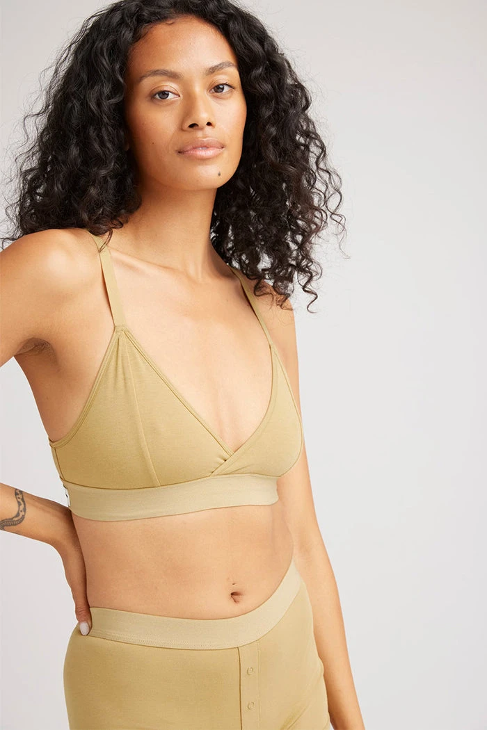 Richer Poorer classic cotton modal fennel seed bralette. Minimal coverage, pullover style with wide elastic band.. Separate Triangle cups, with darts, unpadded and unstructured. Ultra-soft modal cotton blend. Shrink resistant. Adjustable straps.