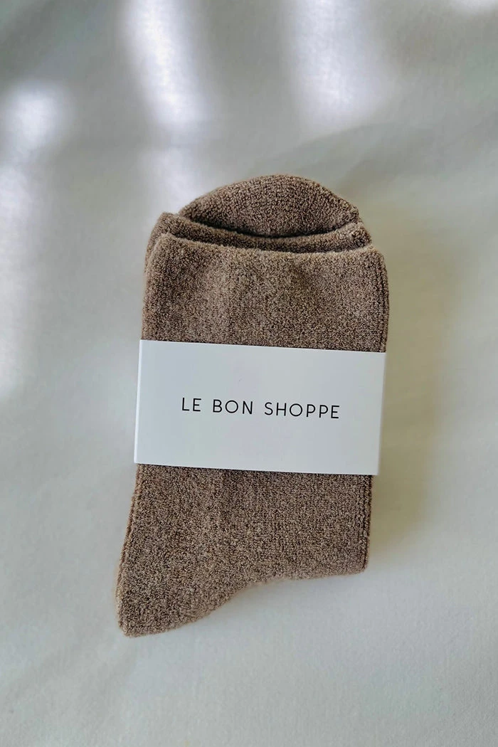 Le Bon Shoppe comfy, cozy, terry cloth Cloud socks in Frappe brown tan.