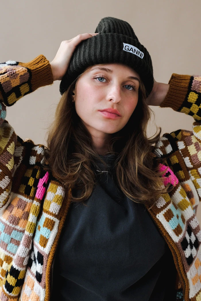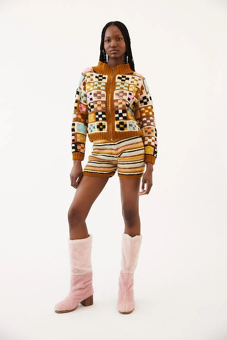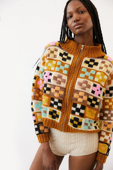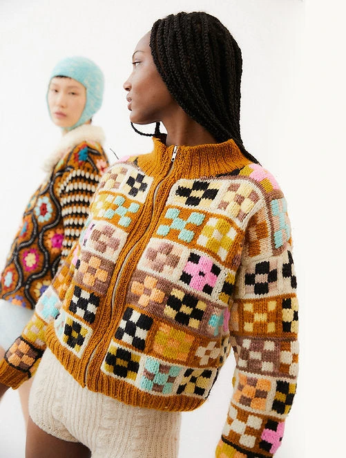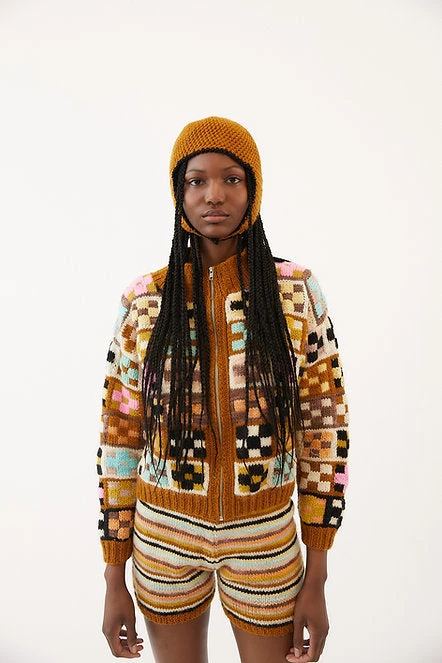Tach Eleonor hand knit wool cardigan with zip closure.