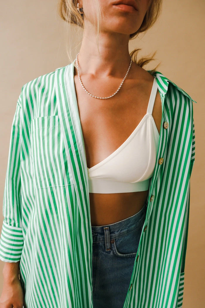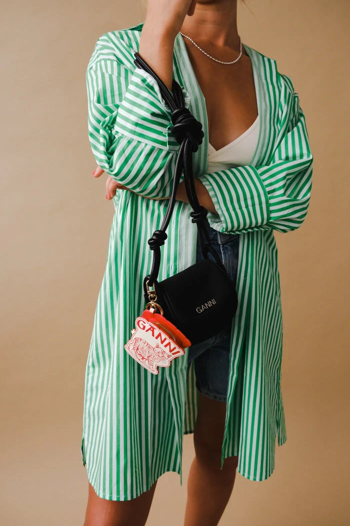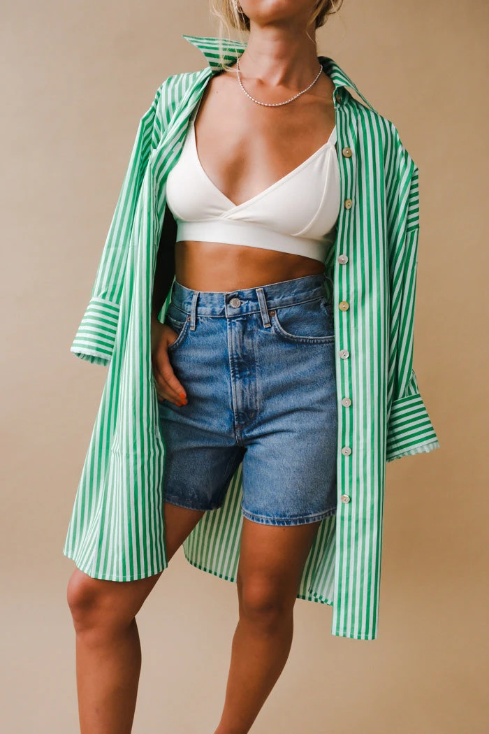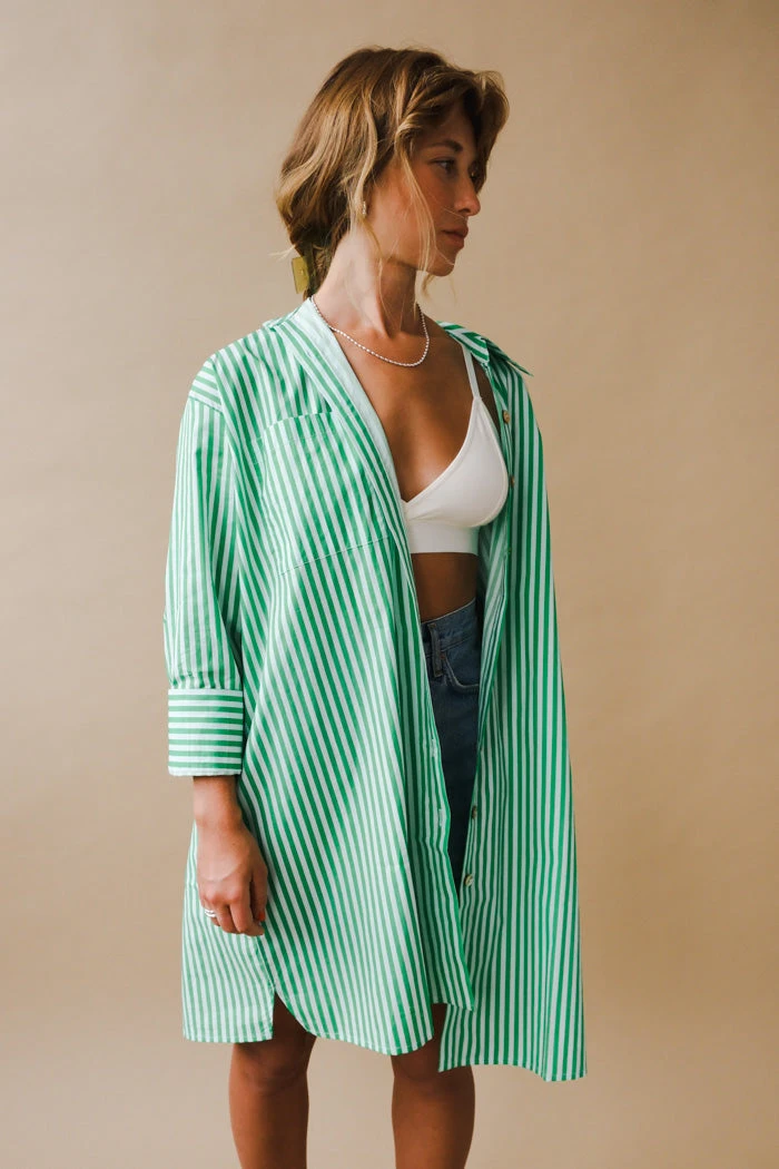 Wray Etore button up shirt dress in kelly green stripe.Â