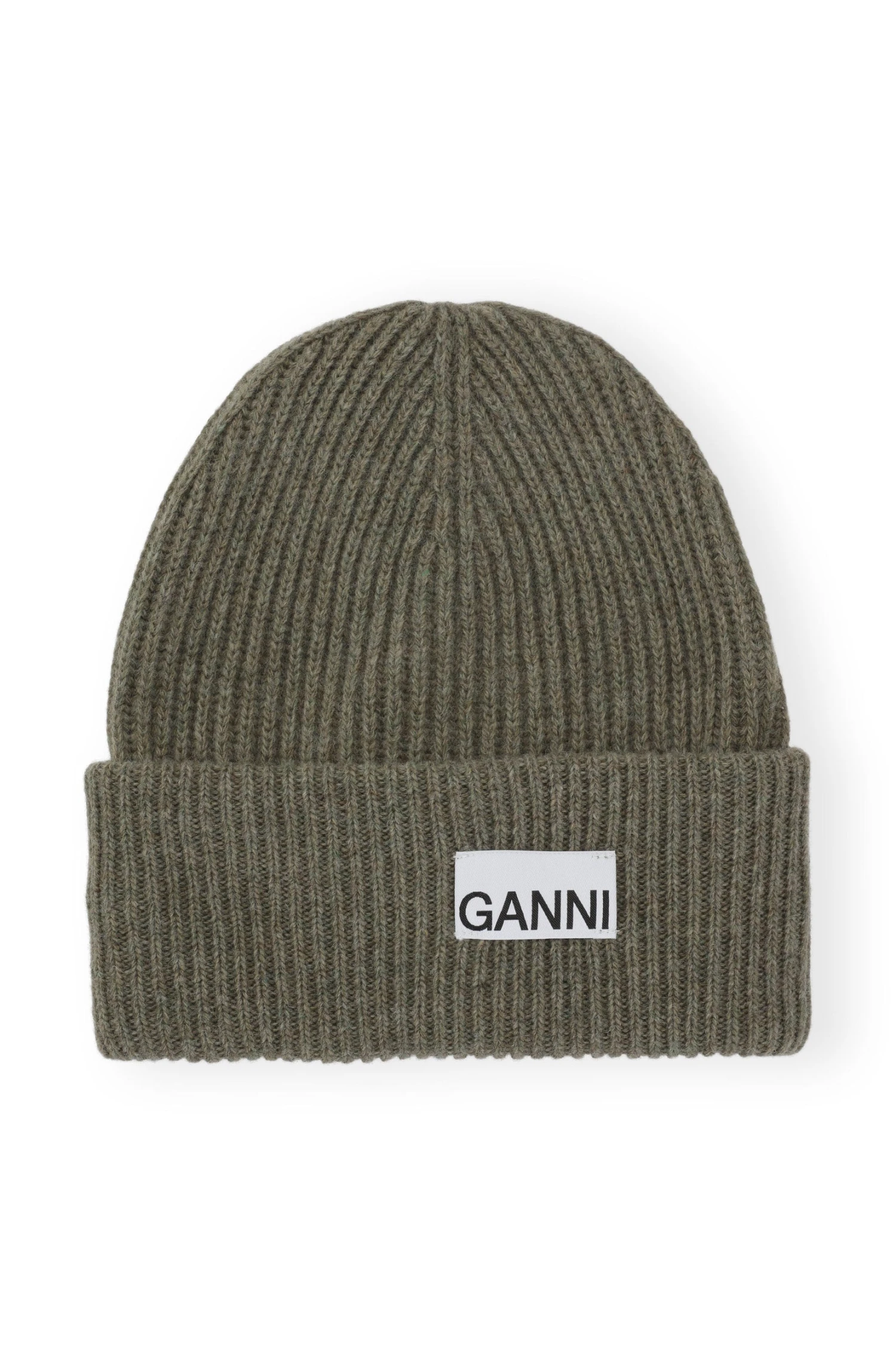 Ganni light structured rib knit beanie in kalamata olive.Â