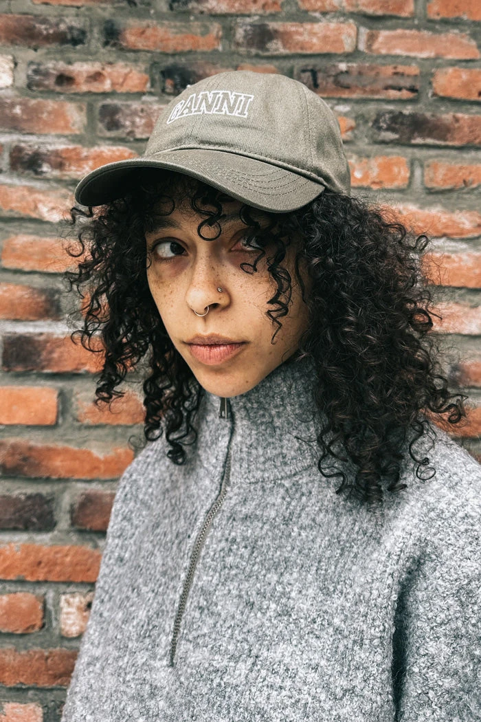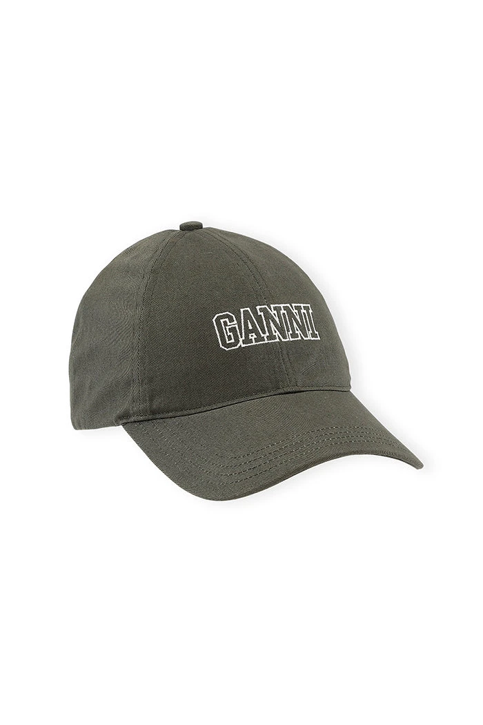 Ganni classic hat in kalamata olive green in thick, heavyweight cotton with twill texture.