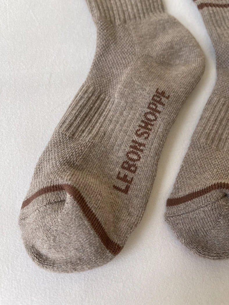 Le Bon Shoppe Girlfriend socks in hazelwood brown with dark brown stripes. Crew version of one of our bestselling Boyfriend Socks!