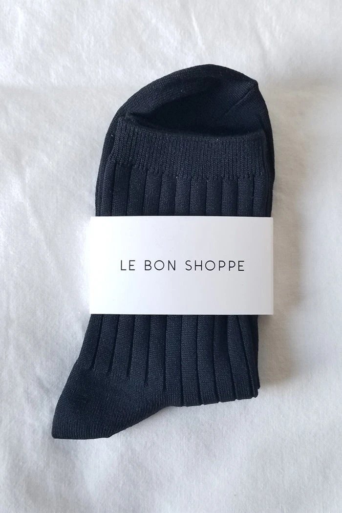 Le Bon Shoppe Her socks perfect height knit rib socks in true black.