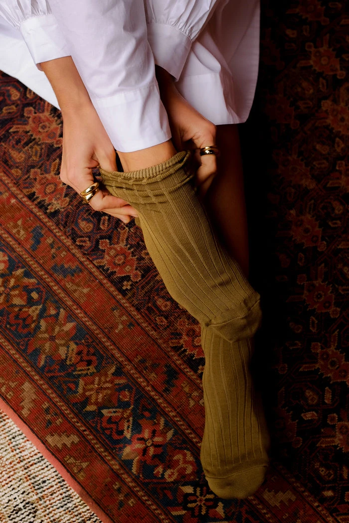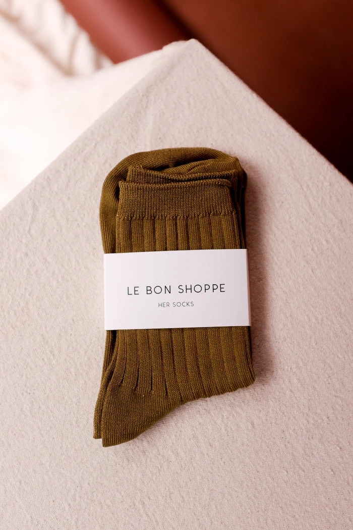 Le Bon Shoppe Her socks perfect height knit rib socks in pesto green.