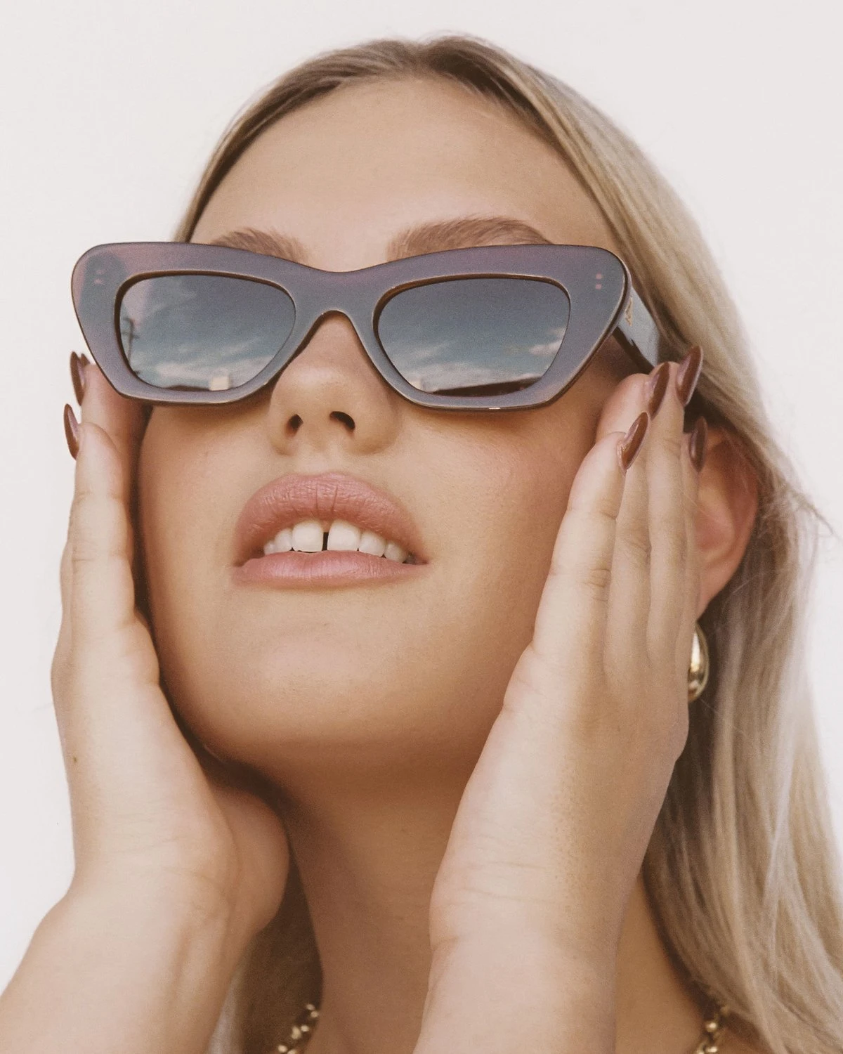 Raie eyewear Ivy sunglasses in zodiac. Bambi’s big sister, she’s classier, sexier and bolder. The perfect cat eye frame, you finally found it. This feline shade, sitting prompt down your nose, baby blue eyes ready to take on whatever comes your way. Your eyes will thank you later. The Ivy – she’s here to stay.