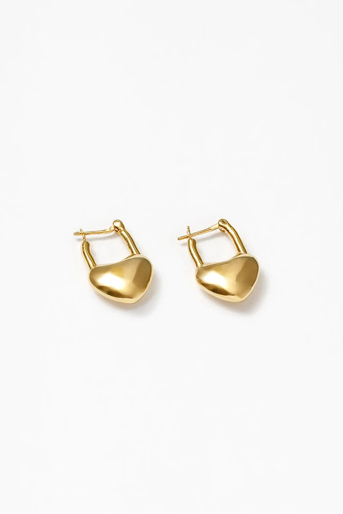 14k gold plated bronze heart padlock earrings, 14k gold vermeil hinge.