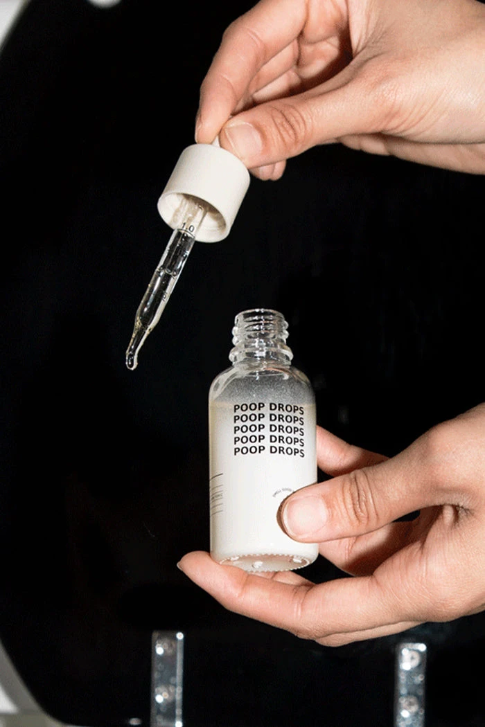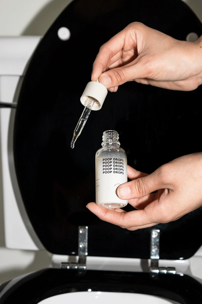 To use: push down on the cap + push to open. Drop inside your toilet bowl 1-2 times before sitting down. Do your thing and let Poop Drops work their magic.