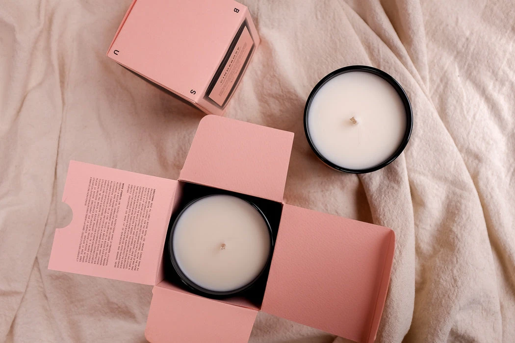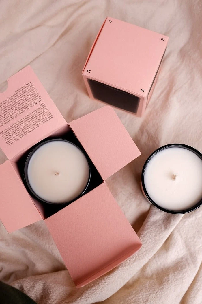 Coconut and beeswax blend with braided cotton wick, in glossy black glass tumbler.Â