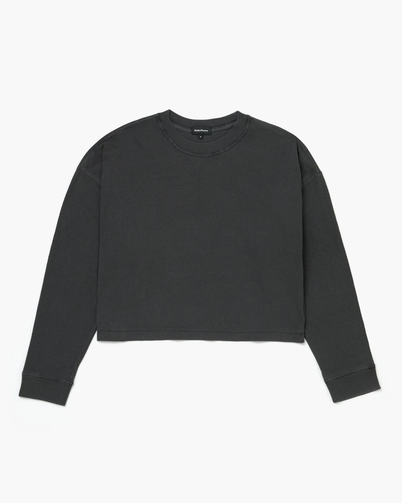 Richer Poorer relaxed crop long sleeve tee in stretch limo washed grey.