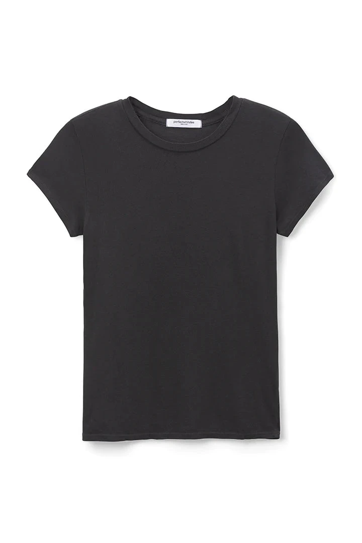 Perfect White Tee Sheryl baby tee in vintage black. 90’s inspired fitted baby tee is the perfect length to tuck into denim.Â