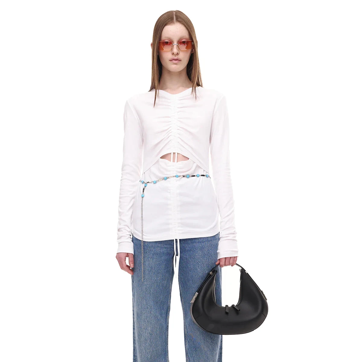 Measurements in inches: width 11.4, height 9.8, depth 3.9, strap drop 5.7-9.45.Â