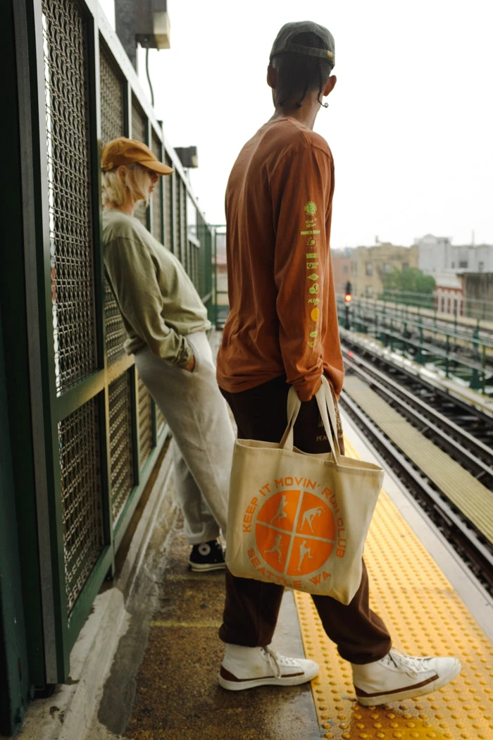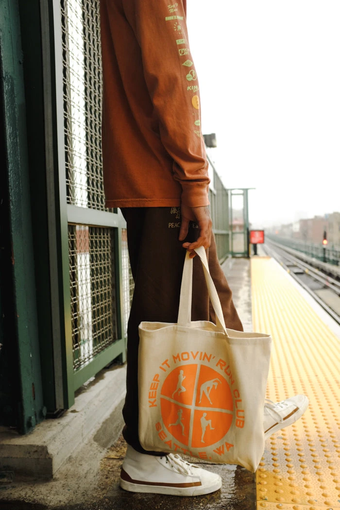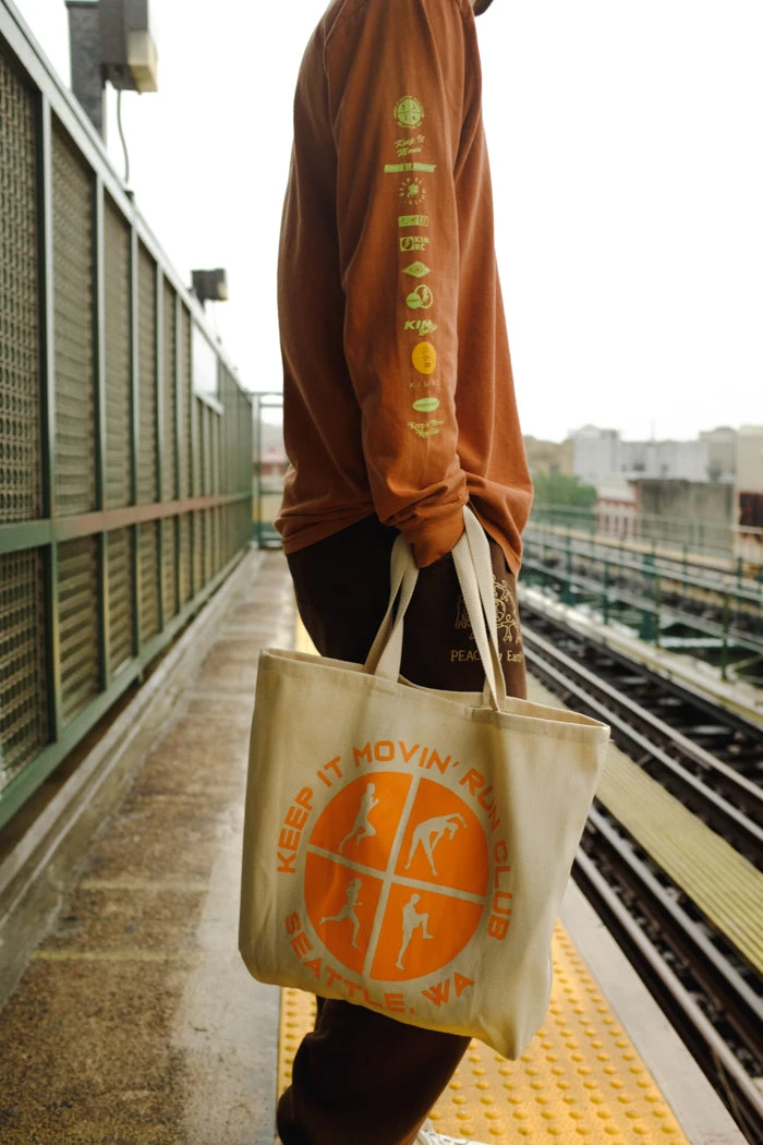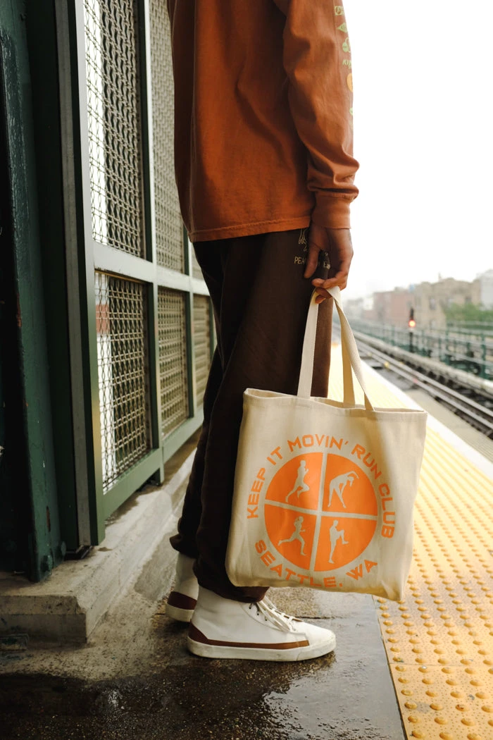 Keep it movin’ warm up natural canvas tote.