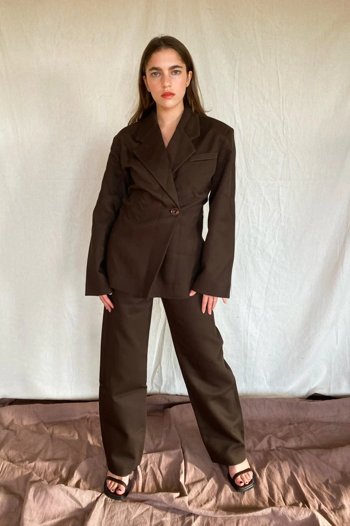 Rita Row high waist, straight leg Williams trouser in chocolate brown.Â